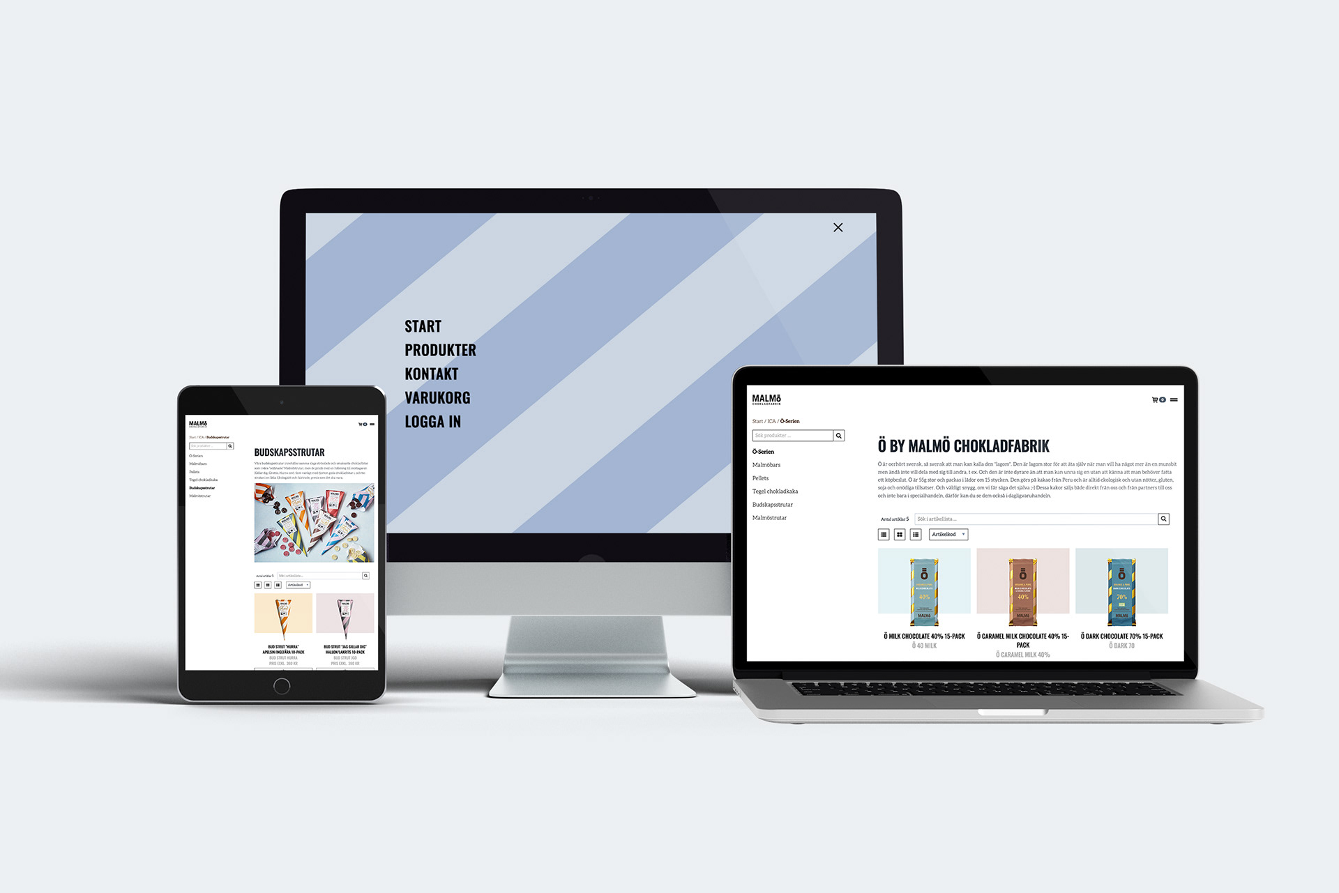 Design of Malmö Chokladfabrik's B2B web shop, built in Pyramid E-line. The design was created as part of my work at Webblandskapet. The shop can be found at https://shop.malmochokladfabrik.se.